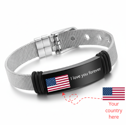 An elegant bracelet with the USA flag and a message of eternal love perfect for meaningful gifts.